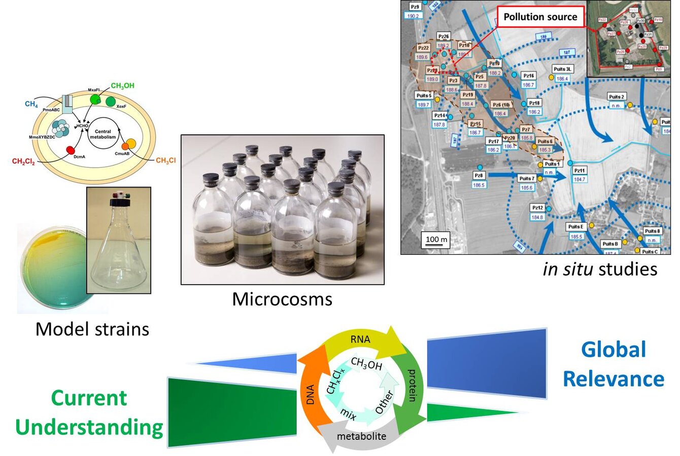 Les activités de l'équipe "Adaptations et Interactions Microbiennes dans l'Environnement" (AIME) se focalisent sur la dégradation microbienne des polluants organohalogénés et des micropolluants émergents, et plus particulièrement des composés halogénés à un atome de carbone (C1) par les microorganismes méthylotrophes.